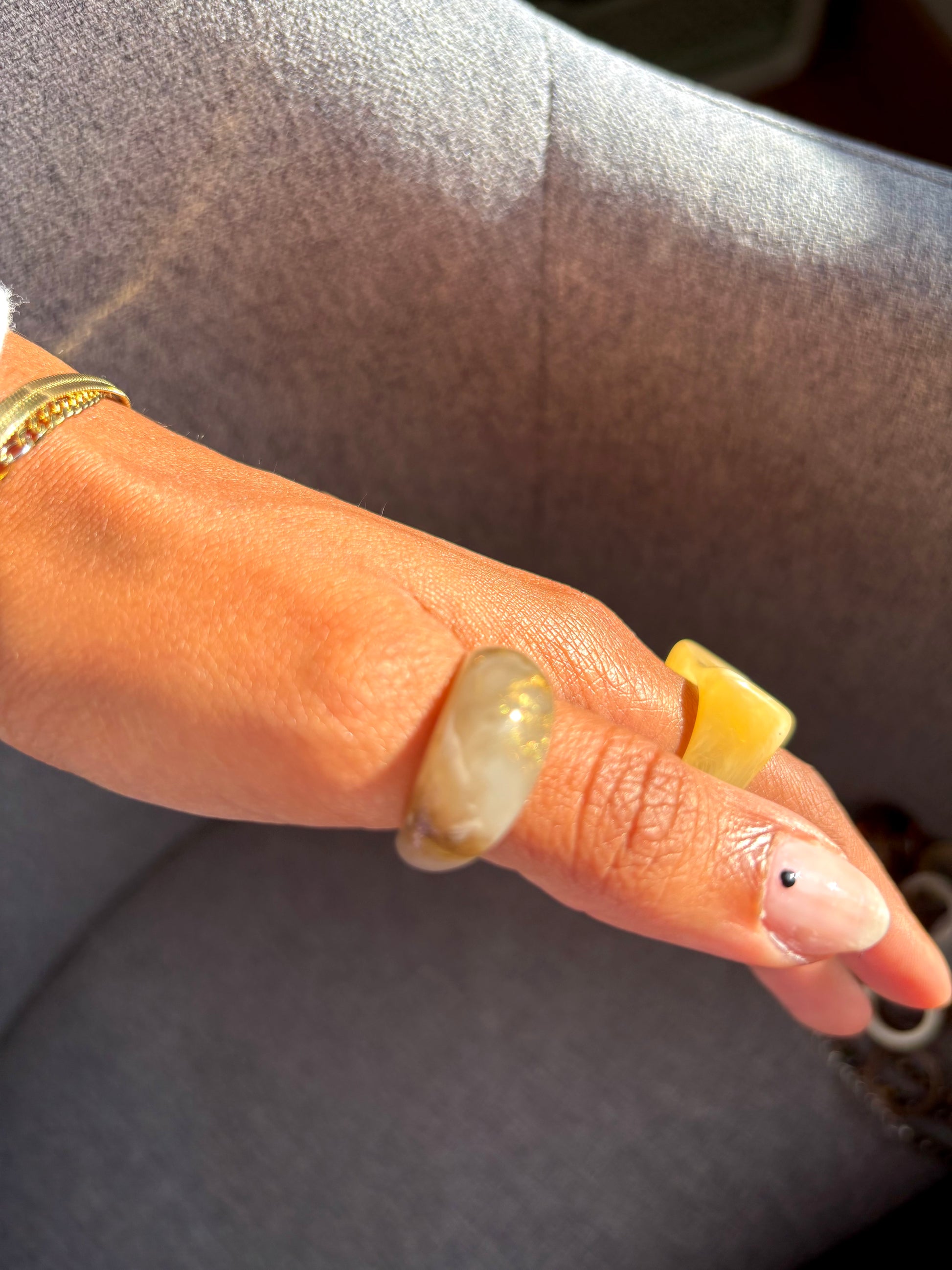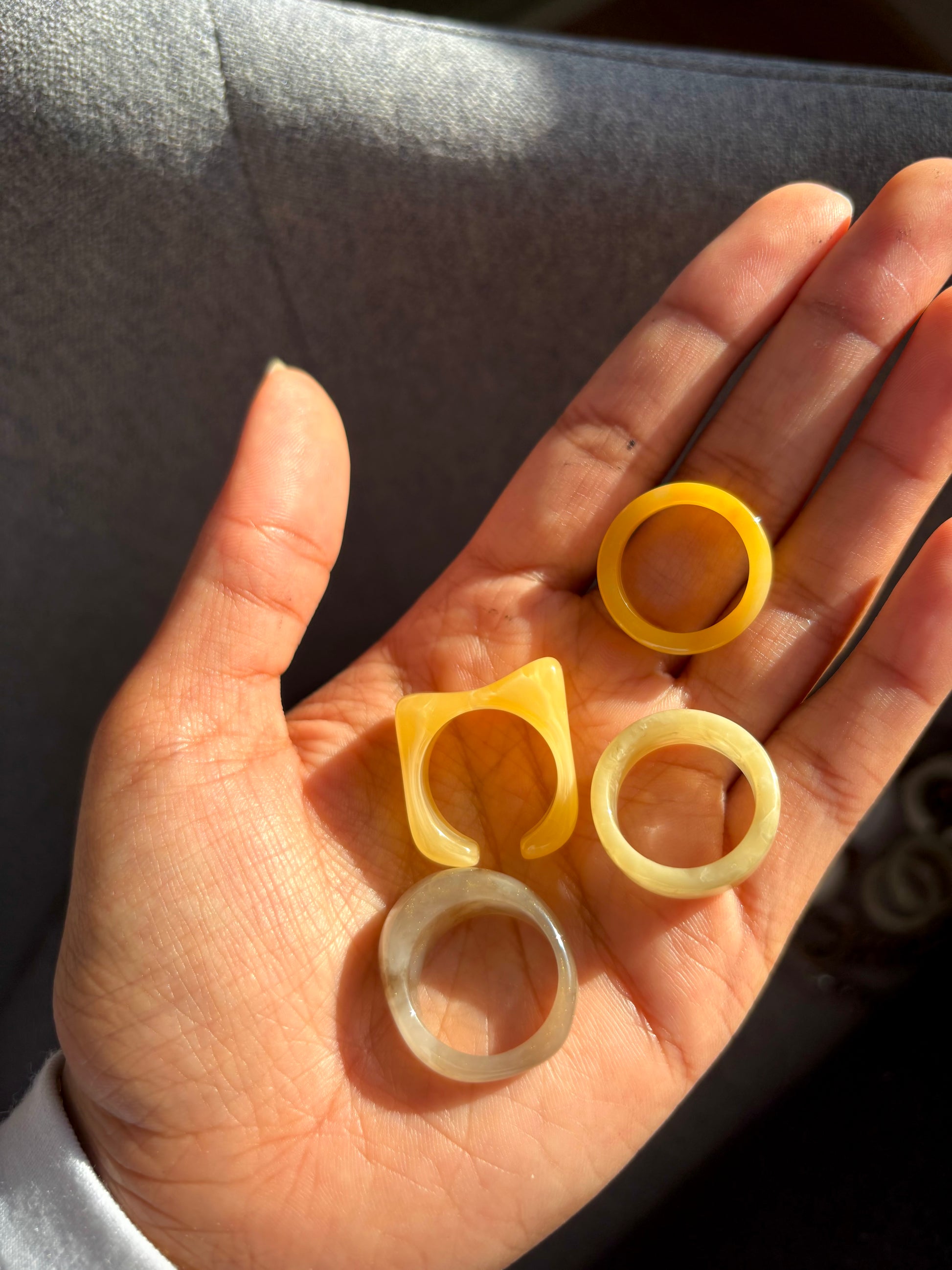 The Marigold Stack features 4 handcrafted rings from Portugal, designed to be mixed and matched in endless combinations. The ring diameters range from 1.8 cm to 2.2 cm, making them perfect for wearing on different fingers.