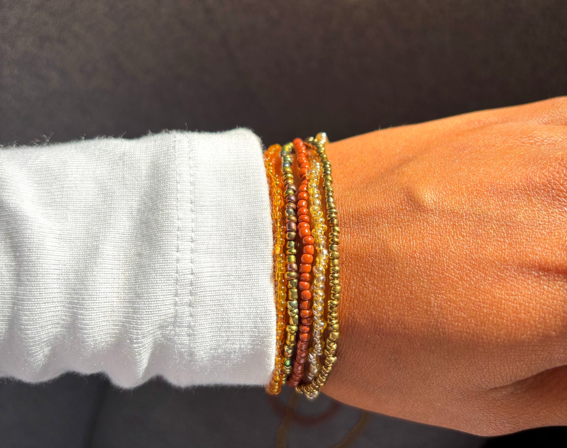 The Sierra Stack is made of 5 beaded bracelets, strung on elastic thread to fit every wrist comfortably. Not waterproof, but perfect for everyday style.